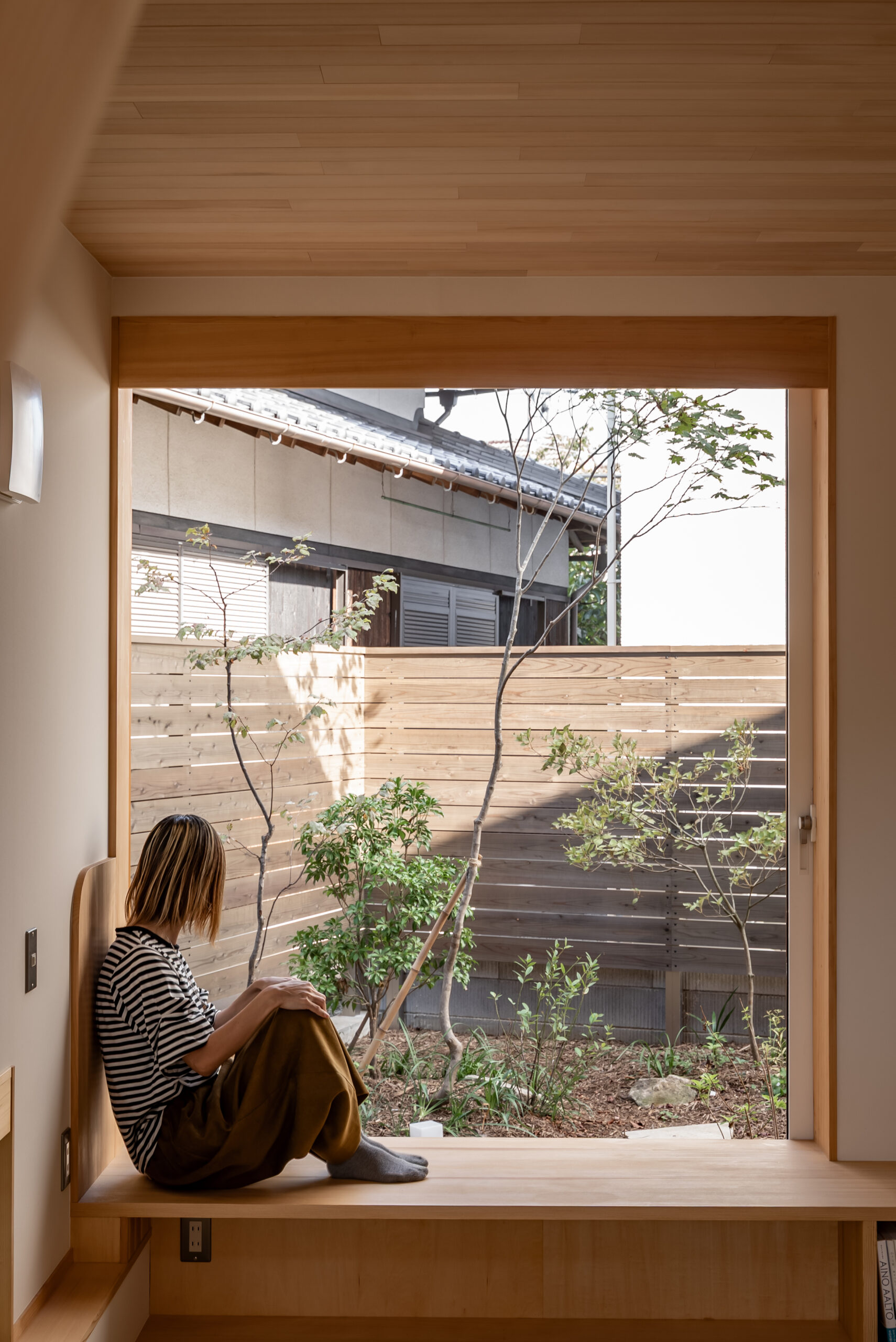視線の先には庭へと続く開口がそっとつながる。