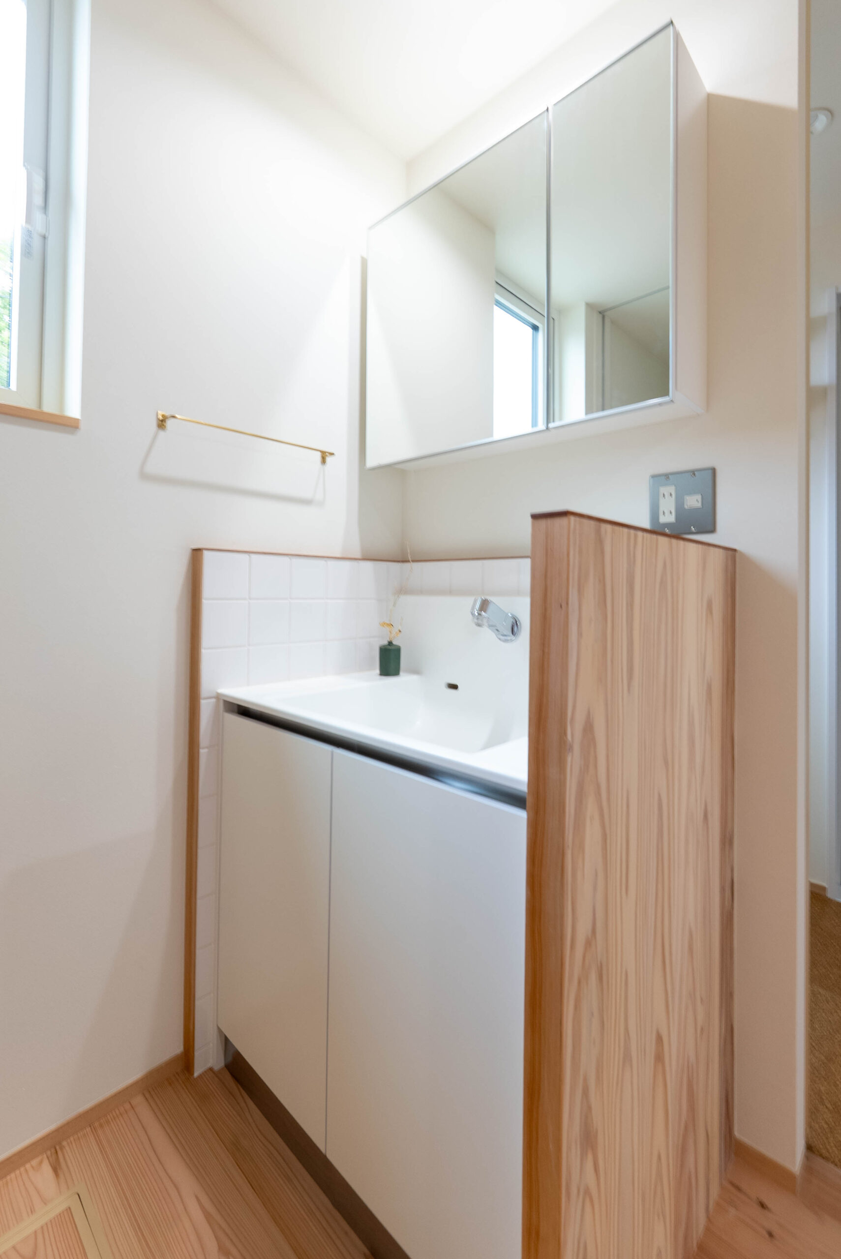 窓からは緑がのぞき、手元に自然光が差し込むため、毎日の家事の時間も少し特別なものに感じられるよう設計しました。